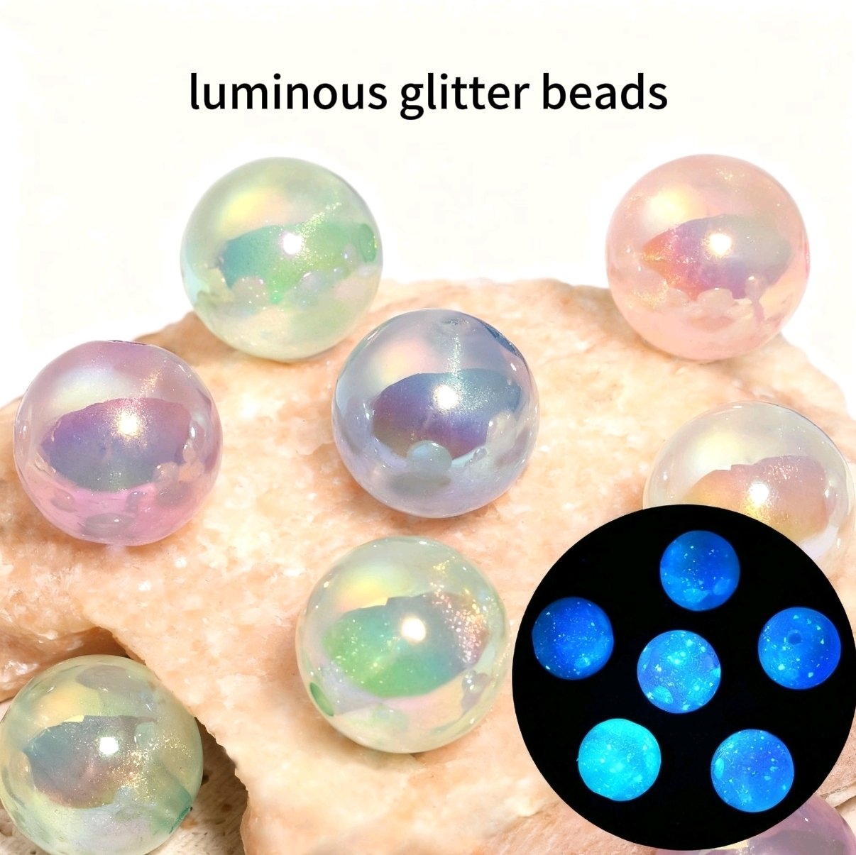 Light up your creativity with our glow-in-the-dark acrylic beads! These delicate round beads feature a subtle iridescent sparkle that catches the light beautifully—and glows softly in the dark. Perfect for DIY jewelry, keychains, bookmarks, badge reels, and more, they add a magical touch to any project.